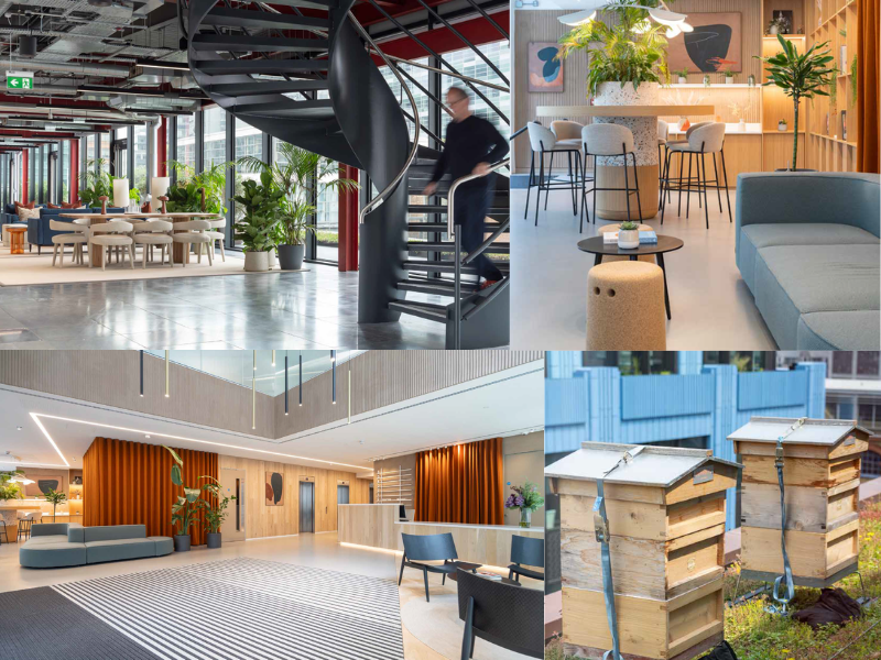 Offering up to 70,000 sq ft of comprehensively refurbished workspace with ground floor breakout space and courtyard, over 4,700 sq ft of terraces and green roofs with beehives.