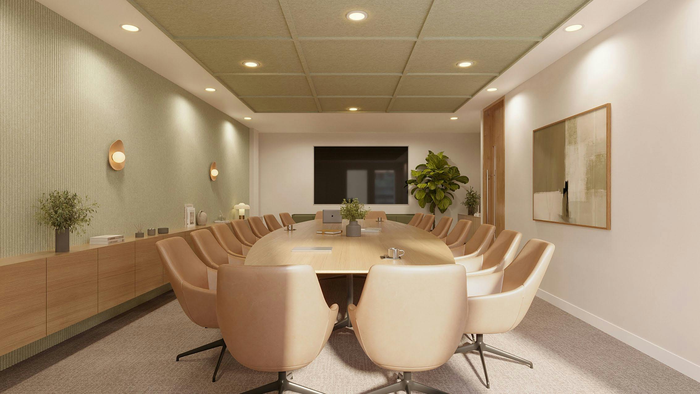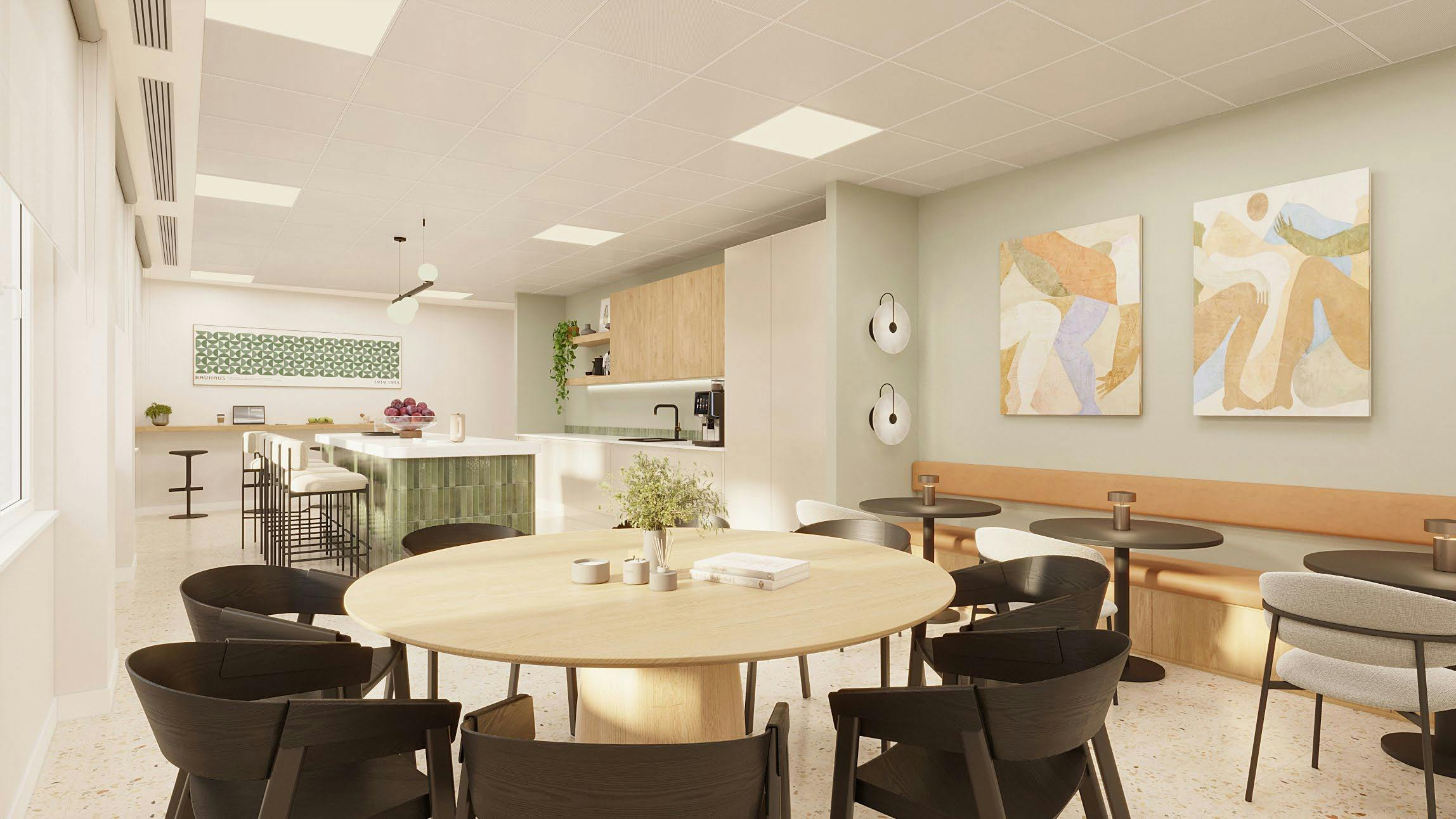 The 6th floor provides a reception/arrival lounge, 18 person boardroom and 5 meeting rooms in the client facing area, 3 private offices, an internal meeting room, 2 phone pods, 88 desks, collaborative working spaces and kitchen/breakout.